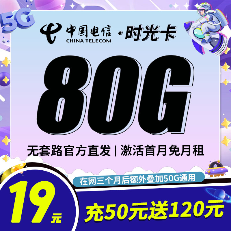 卡世界电信时光卡19元80G全国流量首月免月租