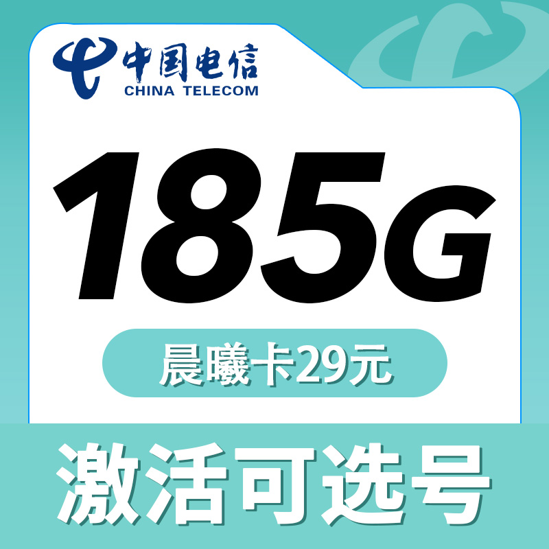 卡世界电信晨曦卡29元185G可选号长期套餐