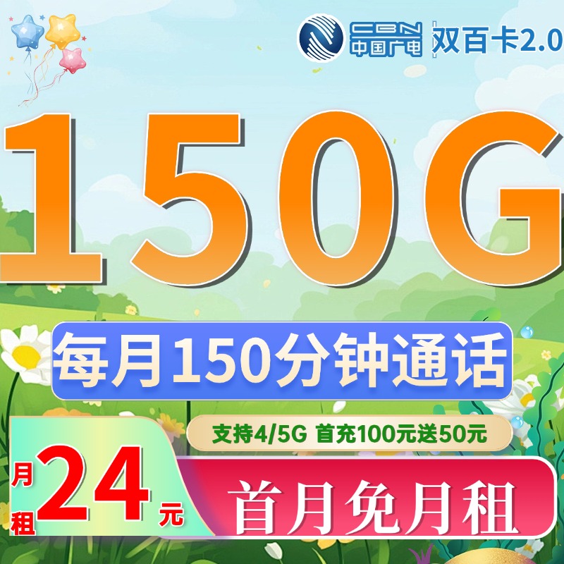 广电双百卡2.0 24元150G+150分钟(流量支持结转)