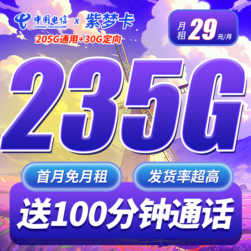 电信紫梦卡29元235G+100分钟