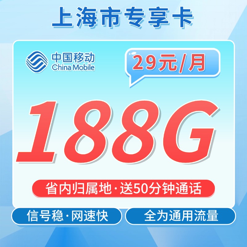 移动上海卡29元188G+50分钟