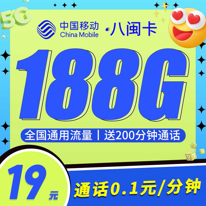 移动八闽卡19元188G+200分钟