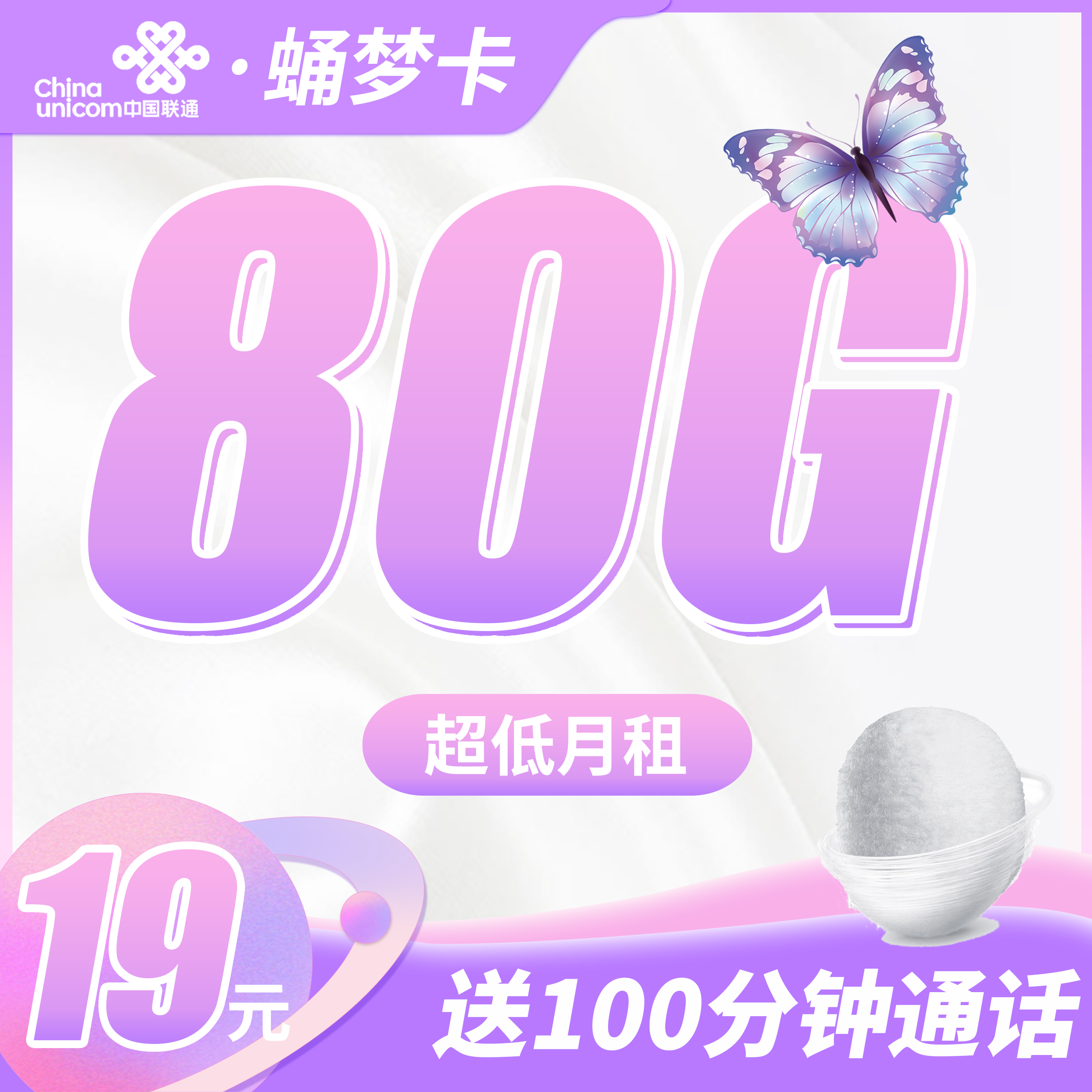 联通蛹梦卡19元80G+100分钟