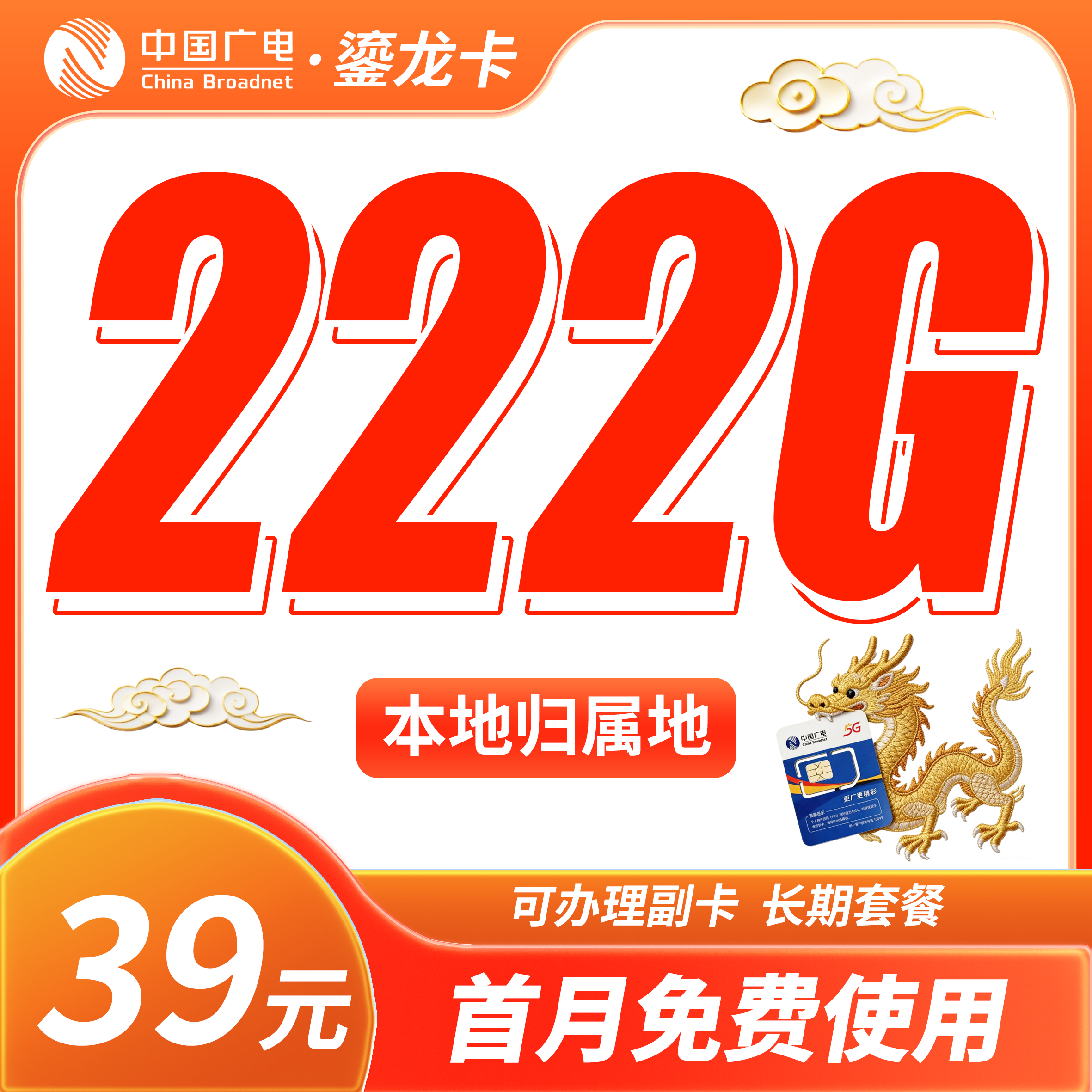 广电鎏龙卡39元222G通用流量+本地归属地+可发全国!
