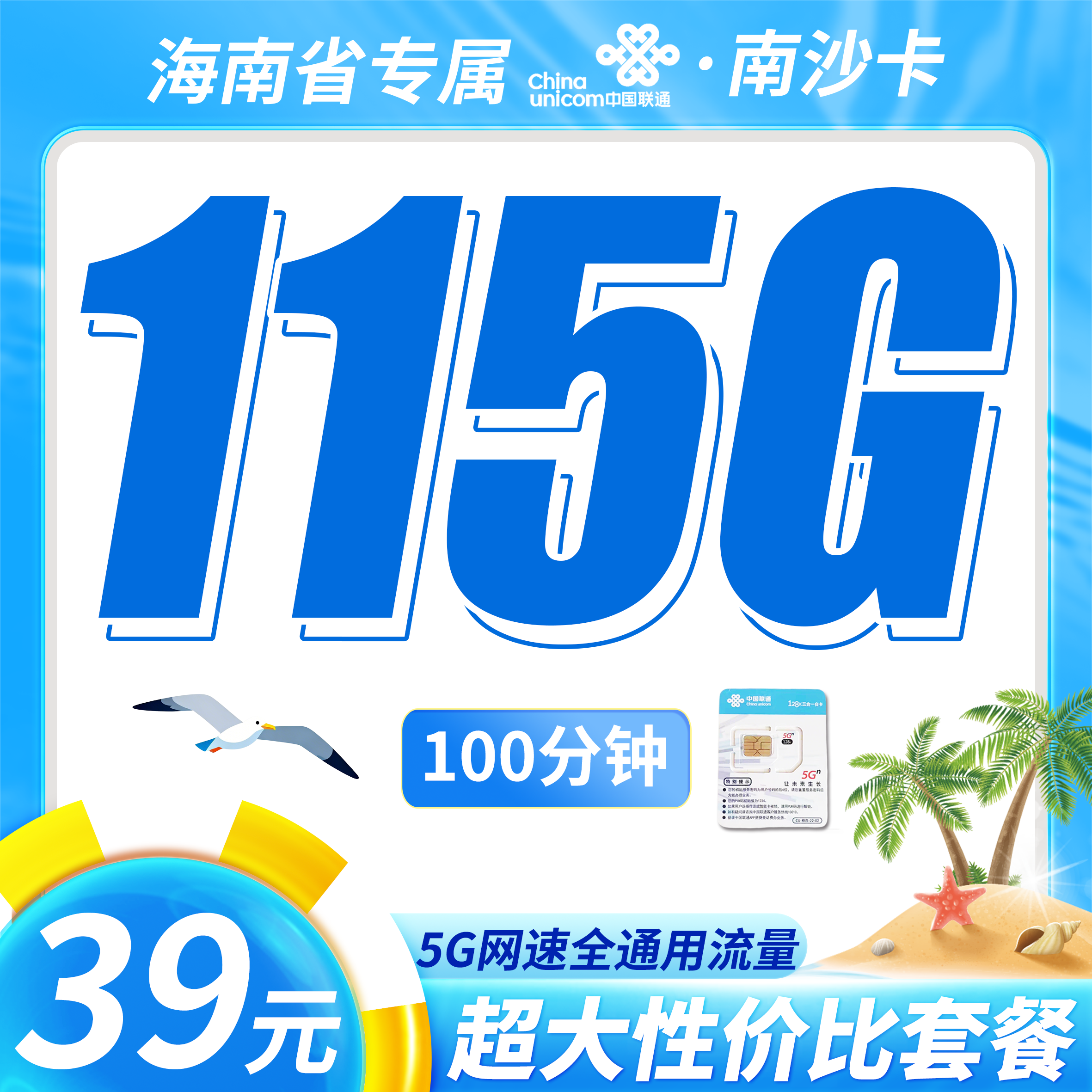 联通南沙卡39元115G+100分钟+海南专属!套餐构成首月39元按天扣除,流量为115G按天折算到账;次月起39月租115G通用流量+100分钟通话,到期根据运营商政策续约。归属地海南不发地区只发海南配送方式京东激活方式上门激活首充渠道任意渠道一次性充值100办理年龄18-60岁违停复机中国联通APP二次实名认证或到营业厅办理认证套餐合约12个月合约注销方式支持异地注销、营业厅注销,合约期内注销